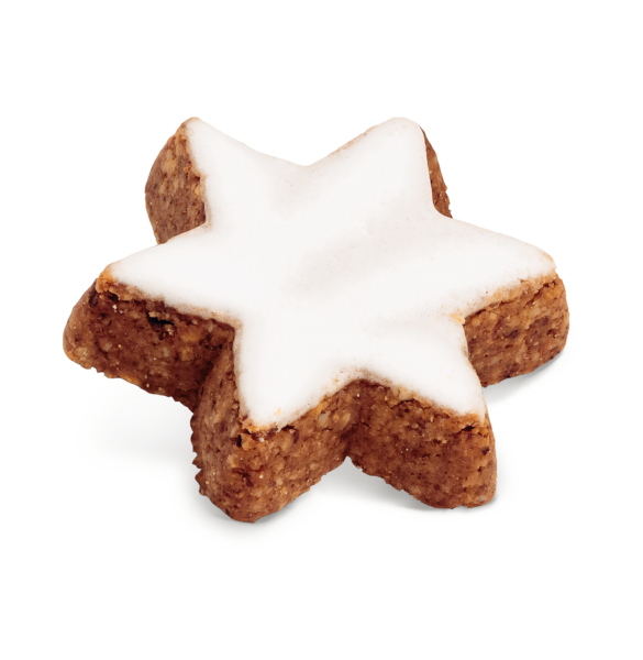 Die weiche und feuchte Konsistenz, das feine Mandel und Zimtaroma, die weisse Eiweissglasur sowie die Sternform geben diesem Gebäck seinen einzigartigen Charakter.